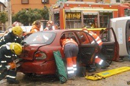 Un simulacro de accidente de tráfico con dos coches implicados ha puesto fin a la programación de la V Semana de la Prevención de Incendios que se ha desarrollado durante toda esta semana organizada por el Consorcio Provincial de Bomberos (CEIS) y la Diputación de Guadalajara con el fin de dar a conocer a la población los conocimientos básicos de autoprotección. Bomberos, Guardia Civil, Protección Civil y Cruz Roja han participado en el rescate de cinco personas ante la atenta mirada de los alumnos y del público asistente en la Plaza de la Hora de Pastrana que han seguido las explicaciones que el oficial jefe del Consorcio, Agustín de la Herran, ha ido narrando en el transcurso del simulacro. SIGUE