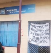 El Grupo Municipal Popular en el Ayuntamiento de Azuqueca de Henares ha lamentado la falta de respeto y responsabilidad de quienes, “de manera impune y con total alevosía, aprovecharon la jornada de huelga en Educación Secundaria para amarrar a nuestra sede la pancarta con la que, pocas horas antes, unos cuantos manifestantes recorrieron las calles de Azuqueca de Henares”, denuncia el portavoz del Partido Popular, José Luis Moraga. Así, el popular ha mostrado su hastío porque, además de los tres ataques sufridos en menos de un año, “de manera periódica nuestra sede aparece con panfletos o pasquines en contra de la labor del Partido Popular y otras acusaciones e insultos peores. Les recordamos que contamos con abundantes cauces de comunicación directa con los vecinos, pero parece que existe un grupúsculo que opta por la violentación de los bienes materiales sin dar la cara, amparándose en la noche o escondiéndose cuando cometen estas atrocidades”. SIGUE