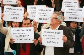 Más de un centenar de alcaldes y concejales del PSOE, que representan a unos 50 ayuntamientos de la provincia de Guadalajara, se han concentrado ante la Delegación de la Junta de Comunidades para exigir a Cospedal que pague lo que debe a sus vecinos. Se trata de deudas que se han disparado durante los 16 meses de Gobierno de Cospedal hasta alcanzar cifras millonarias en su conjunto, correspondientes a servicios que son competencia de la Junta de Comunidades y que los ayuntamientos han prestado a través de convenios que la Administración regional no está pagando. SIGUE