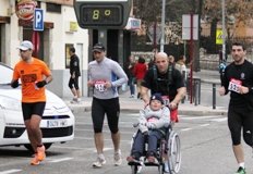 Algo más de dos horas después de que el Concejal de Deportes, Eladio Freijo, diera la salida a la carrera en las Pistas de la Fuente de la Niña, se produjo uno de los momentos más emocionantes de la prueba con la llegada a la línea de meta de los agentes de Movilidad Ciudadana José Antonio Rodríguez y Roberto Cano quienes, como habían prometido, completaron el recorrido acompañando a una persona discapacitada en silla de ruedas. Los dos agentes estaban muy satisfechos de la experiencia, sobre todo, tras superar tramos tan duros como la subida final de la Avenida de Barcelona.