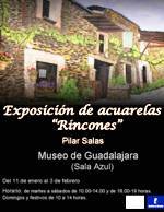 La Sala Azul del Museo de Guadalajara, en el Palacio del Infantado, acoge desde mañana viernes 11 de enero a las 20 horas la exposición temporal “Rincones”, de la artista Pilar Salas. En sus obras representa paisajes de distintos lugares de la geografía española, incluidos los de nuestra provincia, utilizando la técnica de la acuarela. La exposición se podrá visitar hasta el próximo 3 de febrero en el horario habitual del Museo, de martes a sábado de 10 a 14 horas y de 16 a 19 horas y domingos y festivos de 10 a 14 horas.