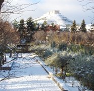 | Bella postal de Jadraque nevado, con el Castillo del Cid al fondo |