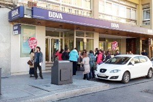María se encerró en la sucursal del BBVA de la Plaza del Jardinillo para evitar que la desahuciaran de su casa