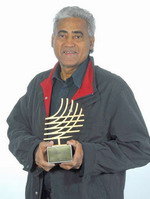 | Santiago con el trofeo que le acredita como mejor entrenador del año. (Foto: Luis Pola) |