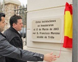 Como ocurriera con la apertura del Mesón el día anterior, el alcalde enmarcó las nuevas instalaciones del campo, en el programa de mejora de servicios e infraestructuras que Ayuntamiento de Trillo ha puesto en marcha. Después cedió el protagonismo al párroco local, Santiago Jiménez, que dijo unas palabras y roció con agua bendita el césped del campo. A renglón seguido el concejal de deportes, Hugo Pérez, y el propio Moreno descubrieron la placa conmemorativa que recuerda el día de la apertura de las instalaciones. Distintas personalidades locales y provinciales estuvieron presentes en el acto. Javier del Río diputado delegado de Deportes, acompañó, como ya hiciera el pasado martes en la presentación del torneo en Guadalajara, al Ayuntamiento de Trillo en la apertura.