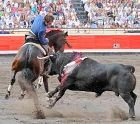 La grandes figuras de a caballo no tienen que enfrentar la quema que supondría la retrasnmisión semanal de sus corridas. Incluso miden sus enfrentamientos en la cumbre. Los públicos van rotando y sólo un puñado de profesionales y aficionados puede “cansarse” de verlos.