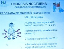 Los profesionales de la Unidad de Salud Mental, a través de diverso material gráfico, explican a los niños conocimientos de la función vesical y les facilitan normas para que puedan aplicar en su vida diaria. Los expertos coinciden en resaltar que el respaldo de los padres resulta fundamental en este proceso. Entre otras medidas, deberán evitar usar el pañal, ayudar a su hijo en el entrenamiento de la retención, controlar que no beban agua a partir de las 20 horas y recordar al menor que debe vaciar la vejiga antes de acostarse.
