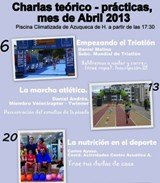 El pasado sábado se inició el “ciclo de conferencias sobre deporte Abril 2013”, que se va a desarrollar durante todo los sábados del mes y tienen como objetivo aprender, preguntar y practicar sobre la temática de triatlón. Cerca de 20 personas acudieron a la cita que se desarrolló el pasado sábado en la piscina Climatizada de Azuqueca de Henares, en la que Daniel Molina, subcampeón del mundo en el último campeonato mundial de triatlón para discapacitados, nos hablo sobre su experiencia como deportista y respondió a las preguntas de los asistentes. SIGUE