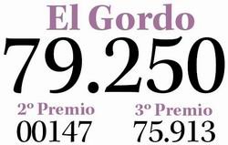 E l 79.250 ha resultado premiado con el Gordo del Sorteo de Navidad. El número se lleva 3 millones a la serie y 300.000 euros al décimo. Gran parte del premio ha recaído en la provincia de Barcelona. El Gordo este año ha salido en la quinta tabla a las 11:14, cuando ya se habían repartido el segundo premio, los dos cuartos y cinco quintos premios y ha sido cantado por los niños Andreas López e Iván Quintero.