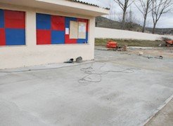 La Brigada Municipal ha pavimentado con solera de hormigón los accesos y perímetro de vestuario y bar, y ha renovado y pintado el interior de los vestuarios.