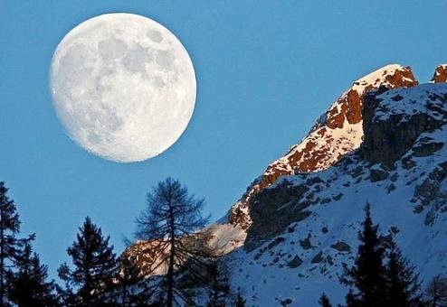 | Impresionante luna sobre las montañas de Suiza |
