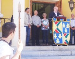 El jadraqueño Pedro Calvo Calleja ha sido el encargado de pregonar la Jornada Medieval de San Juan, con la presencia del delegado de la Junta, José Luis Condado y el alcalde de Jadraque, Alberto Domínguez.