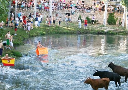 Un año más Trillo se ha convertido durante un día en epicentro nacional de los festejos populares. Miles de aficionados llegados desde toda la provincia y muchos rincones de España, abarrotaron durante toda la jornada del sábado las calles de la localidad alcarreña. A las seis de la tarde se soltaron por las riberas del río Tajo a su paso por Trillo. Unas vacas muy bien presentadas que propiciaron un gran espectáculo. Destacaron sobre manera una vaca negra y otra colorada que estuvieron jugando durante mucho tiempo con los más atrevidos. SIGUE