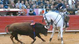 Suerte con los aceros le faltó a un Diego Ventura que llegó a regalar el sobrero. A pesar de lo cual tuvo que conformarse con tres ovaciones con saludos. Tuvo que lidiar dos ejemplares de Rancho Seco y un sobrero de Garfias que dieron poco juego. Ventura lo mitigó destacando a lomos de Califa y Nazarí en su primero. En el cuarto encandiló a los aficionados aztecas con los bocados de Morante. Y por último en el astado de regalo tuvo sus mejores momentos montando a Distinto y a Ginés.
