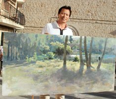 El pintor chino Rao Jiz Zhoug ganó el primer premio del XII Concurso de Pintura rápida de Trillo. El pequinés, afincado en España desde hace trece años, y más concretamente en Madrid, lleva ya unos años acudiendo con regularidad a pintar a la ribera del Tajo en los sucesivos certámenes trillanos. Anteriormente, alguno de sus trabajos ya había sido seleccionado por el jurado de Trillo entre los mejores. Ayer fue la primera vez que el artista oriental se hacía con el primer premio. Rao está en racha. La semana pasada ganó el segundo premio en Riaza (Segovia). No mucho antes, en Burgos, ganó un accésit. SIGUE