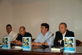 El profesor Fernando Bermejo Batanero presentó hace unos días en la Casa de la Cultura de Trillo su libro: “Los Molinos del Río Cifuentes”, un documento histórico y científico “intachable”, como aseveró el arqueólogo Antonio Batanero, que lo acompañó en la presentación junto a Daniel Martínez Batanero, director de telecomunicaciones de la Junta de Comunidades y cifontino de nacimiento, y a Francisco Moreno, alcalde de Trillo. SIGUE