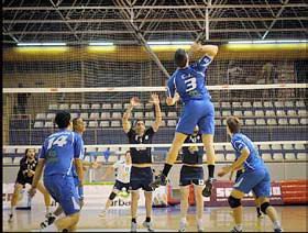 Exhibición del Seranco Voley Guada en el Municipal David Santamaría, ante el tercer clasificado, Melchor Mascaró Petra.