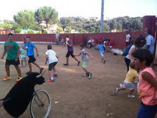 Por un par de días los papeles quedan invertidos en los encierros y no son los mayores quienes se la juegan frente a las reses sino que se convierten en espectadores de sus hijos a quienes animan a correr cuando ven tras ellos los carretones.