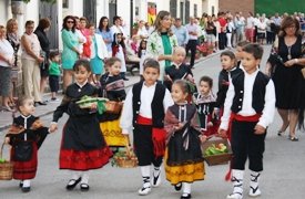 Como ya viene siendo habitual, se celebró la ofrenda floral y de productos de la huerta de Aranzuque al Patrón después de la procesión, en la que participaron niños y niñas vestidos con sus trajes regionales.
