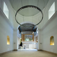 Pero todavía hay más. Y a más altura también. Un lugar mágico y vertiginoso que contagia una inolvidable sensación de ingravidez: el salón del Coro Alto, en la parte más elevada de la Capilla, ya casi tocando la cúpula. Dispone de 85 m2 de superficie y es quizá el lugar que más contrastes ofrece entre la estructura original del siglo XVI y las innovaciones introducidas en este siglo XXI, con las columnas inconclusas que resaltan junto a la reciente remodelación.