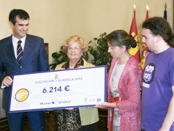 La presidenta de Manos Unidas en Guadalajara, Isabel Moratilla, ha recibido de manos de la máxima responsable de la Diputación Provincial, Ana Guarinos, el cheque por importe de 6.214 euros correspondientes a la recaudación obtenida en la ‘Paella Solidaria’, celebrada el 10 de septiembre en el contexto de la Ferias y Fiestas de Guadalajara. SIGUE