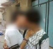 Mouhsin y Raja, de 14 y 15 años, se dejaron fotografiar por su amigo Osama, de 15, dándose un beso en la puerta de su instituto en Nador (Marruecos). SIGUE