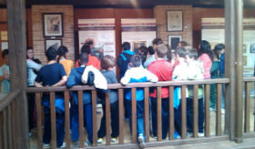 Los escolares seguntinos fueron recibidos y atendidos por el Director de Área de los Servicios Culturales de la Diputación, que fue quien se encargó de introducir al grupo en el contenido de la exposición, y por el Jefe de la Sección de Educación, respondiendo ambos a las preguntas y cuestiones que les fueron planteadas.