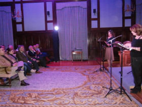 De la mano de la diputada de Cultura, Marta Valdenebro, y del presidente de Siglo Futuro, Juan Garrido, llegaron al salón Abigail Tomey y María José Goyanes, dos actrices de altura para un recital poético-musical en el que también fue protagonista el Dúo Di-Fussion -violín y guitarra- que supo dar el tono para deleite del numeroso público asistente al acto.