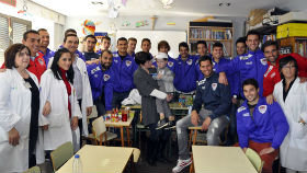 Ayer fue un día muy especial para jugadores y cuerpo técnico del C.D. Guadalajara. En torno a las 13:00 h. visitaban a niños ingresados y bebés recién nacidos para transmitir toda su alegría, haciéndoles además, regalos que el Deportivo había preparado para niños y bebés. SIGUE