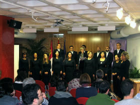 Para la jornada inaugural de la muestra, y teniendo en cuenta las fechas navideñas, Novi Cantores ha elegido algunas de las piezas más representativas de su amplio repertorio: Gatatumba, Campana sobre Campana, los Peces en el río y Las barbas de San José, para terminar con el popular ‘Chiquirriquitín’. Una actuación muy aplaudida por el público que llenaba la sala y entre el que se encontraba la diputada Eloísa Rodríguez, que ha acudido al evento en nombre de la Institución Provincial. Al término del concierto, la directora del coro expresaba públicamente el agradecimiento a la Diputación de Guadalajara por su apoyo y colaboración continua. De hecho, el grupo realizada sus ensayos en el San José, ofreciendo a cambio algunos conciertos a lo largo del año.