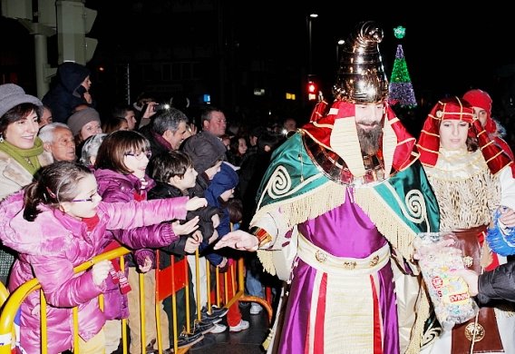 La llegada de los magos de Oriente ha despertado la ilusión de los más pequeños de la familia que se han afanado en saludar a sus majestades que, desde sus carrozas reales les devolvían el saludo y miles de caramelos.