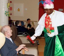Después de supervisar el reparto de regalos que iban a llevar a cabo por la tarde, en la Plaza Mayor, Melchor, Gaspar y Baltasar recorrieron, a partir de las 11:00 horas de la mañana, las cuatro residencias de ancianos de Sigüenza acompañados por una delegación municipal que encabezaba el alcalde de la ciudad, José Manuel Latre. En cada una de ellas han sonado los villancicos, empezando, naturalmente, por la Navidad seguntina.