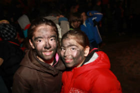La ciudad rodeaba la hoguera, convirtiendo los cuatro grados de temperatura que hacían, en más de 20. Algunos muchachos se atrevían a desfilar frente a las llamas en manga corta. Y mientras el fuego la iba consumiendo, los bailes al son de los gaiteros se acompasaban a la música y a evolución de la hoguera. En cuanto hubo ocasión, los niños comenzaron a ennegrecerse la cara con los tizones.
