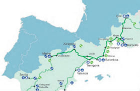 El tramo Lion- Madrid del Corredor Mediterráneo tendrá como principales puntos intermedios las localidades francesas de Montpelier y Perpiñán, y los municipios españoles de Girona, Barcelona, Tarragona, Zaragoza, además de Azuqueca de Henares.