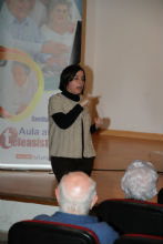 La formadora informó a los asistentes sobre las ventajas del Servicio Público de Teleasistencia, animando a las personas mayores a solicitarlo dirigiéndose al trabajador social de la localidad.