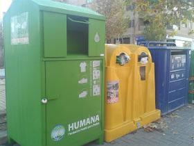 Humana tiene 5.000 contenedores repartidos por toda España para la recogida de ropa usada merced a los acuerdos que mantiene con más de 800 ayuntamientos y medio millar de entidades y empresas privadas. La Fundación dispone de 29 tiendas de venta de ropa de segunda mano en Madrid (13), Barcelona (12), Sevilla (2) y Granada (2), que generan los recursos necesarios para la financiación de los programas de cooperación internacional. Gaitán señala que la labor de esta organización cumple con la regla de las tres erres de protección ambiental pues “reduce el volumen de ropa usada que iría al vertedero, reutiliza la mayoría del material que se desecha y facilita el reciclaje textil de la ropa en mal estado”.