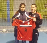 | En la foto aparecen Eva y la presidenta del club, Nieves Díaz, posando con la camiseta del Kutxabank Chiloeches |