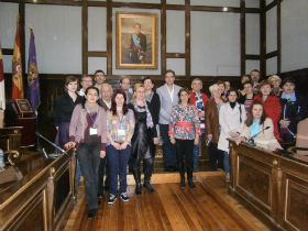 Después de recorrer algunos de los espacios más emblemáticos y significativos del Palacio Provincial, el grupo ha sido recibido en el Salón de Plenos por la diputada delegada de Empleo Público y Régimen, Eloísa Rodríguez, quien se ha dirigido a ellos en inglés para apuntar algunos aspectos relacionados la Diputación y también con el gran patrimonio histórico, artístico y cultural que pueden descubrir durante su estancia en nuestra provincia.
