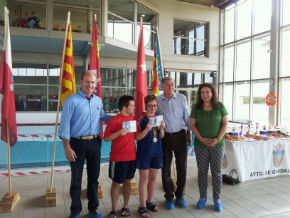 Los dos jóvenes nadadores recibieron las felicitaciones de la concejala de Bienestar Social, Verónica Renales, del diputado provincial Javier del Río, y del senador Porfirio Herrero, que asistieron a la entrega de trofeos del Campeonato Interautonómico de Natación ‘Ciudad de Guadalajara’.