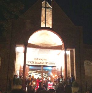 A las once de la noche, el repicar de las campanas anunciaba la llegada de la “Cruz Joven” a las puertas de la parroquia Beata Mª de Jesús