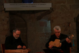 Paniagua y Sánchez Mascuñano interpretaron en Sigüenza, por primera vez en formato dúo, un repertorio de músicas medievales –danzas sacras, cancionero de palacio, calatas y cortesano- al que ambos añadieron explicaciones didácticas “porque entendemos que no existe mucha información sobre esta música, ni sobre estos instrumentos, para un público a quien interesa tanto la música como saber más sobre musicología de la época”, decía ayer Paniagua.