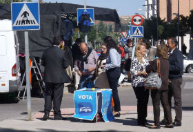 La zona del mercadillo semanal azudense ha sido el lugar elegido por el PP de Azuqueca para explicar las propuestas del Partido Popular en las elecciones al Parlamento Europeo. En el encuentro directo con los azudenses han participado varios miembros de la Junta Local, encabezados por presidenta del PP de Azuqueca, Aure Hormaechea, algunos concejales populares del Ayuntamiento azudense y otros miembros de Nuevas Generaciones.
