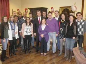 | Beatriz Tirado y Antonio Román, junto a los jóvenes de NNGG. |