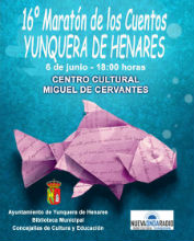 El próximo viernes, 6 de junio, vuelve a Yunquera de Henares el Maratón Viajero de los Cuentos. La actividad organizada por la Biblioteca Municipal y el Seminario de Literatura Infantil y Juvenil de Guadalajara con la colaboración de las Concejalías de Educación y Cultura del Consistorio campiñero, cuenta con gran arraigo en esta localidad certificado por los 16 años que se viene realizando y por la participación de la mayoría de colectivos yunqueranos. Este año el Maratón lleva por título "El Agua". SIGUE