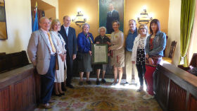 Guarinos acudió a Sigüenza para entregarle una reproducción de su acta de nacimiento en un sencillo acto en el salón del plenos del Ayuntamiento con el alcalde, concejales y familiares