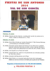 La jornada del sábado 14 comenzará a las 12,00 horas con la Santa Misa oficiada por D. Félix Herranz Muniesa armonizada con la Rondalla Cifontina, a las 12,45 horas tendrá lugar la Procesión de San Antonio de Padua por las calles de la localidad, seguidamente se procederá a la tradicional almoneda de palos, ramos y demás presentes a cargo de los Mayordomos de este año; Rubén y Nuria. A las 14:00 horas los asistentes podrán tomar un refrigerio en la Plaza Mayor. Las actividades programadas para la tarde son unos juegos de cartas (Mus, Brisca y Tute) que tendrán lugar a las 18,00 horas en el Ayuntamiento, siendo a las 21,00 horas cuando el Mayordomo invitará a los presentes en la Plaza. Para terminar estas celebraciones en honor a San Antonio de Padua, a las 22,00 horas, el Ayuntamiento de El Val de San García ha programado un baile hasta altas horas de la madrugada.