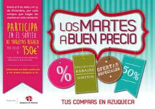Este martes, 15 de julio, se celebra la segunda jornada de la campaña comercial 'Los martes a buen precio', una iniciativa con la que el Ayuntamiento de Azuqueca de Henares persigue impulsar y apoyar el comercio y la hostelería de la localidad. "El funcionamiento es sencillo: cada martes, hasta el 30 de diciembre, los establecimientos adheridos se comprometen a aplicar descuentos, rebajas o mejores condiciones a sus productos o servicios", explica la concejala de Desarrollo Económico, Industria y Comercio, Julia Miguel. SIGUE