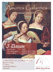 Las 3Damas atesoran una dilatada experiencia desde la que interpretan un depurado ramillete de canciones con instrumentos copias de modelos históricos de conocidos Luthier. Sabedoras de que la música es también espectáculo, interpretan las canciones de amores galantes ataviadas con trajes de época especialmente diseñados para la ocasión. Un disfrute añadido a la belleza de las composiciones. El concierto tiene un fin benéfico. Una parte de la recaudación (6 euros la entrada) se destinará al proyecto de rehabilitación de la Iglesia de Santiago.