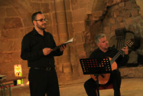 El recital de guitarra y voz puso el broche de oro a la presentación del Centro de Interpretación del Románico en la Iglesia de Santiago