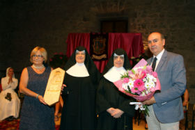 A continuación de la presentación de credenciales, dos representantes de cada centro subieron a recoger su distinción, que tomó la forma de un bonito trofeo. Los entregaron sucesivamente diferentes miembros de la corporación municipal. El momento más emotivo de la Mención llegó cuando llegó el turno de las Hermanitas de los Ancianos Desamparados. “Ellas fueron las pioneras de la atención a personas mayores, enfermos y discapacitados, sin contar con recurso alguno. Son muchas las generaciones de seguntinos que hemos presenciado su trayectoria. Significan algo muy especial para nuestra ciudad”, dijo Toro. Fue Sor Gloria quien recogió el premio. La religiosa afirmó que para su congregación tenía doble valor: “Por un lado supone una reválida de gratitud, de estímulo y ánimo para seguir adelante con nuestro trabajo cotidiano, y por otro, nos llega de la gente que tenemos más cerca, de nuestros vecinos de la ciudad de Sigüenza”.